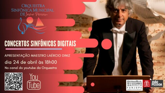 O programa ‘Concertos Sinfônicos Digitais’, realizado pela Orquestra Sinfônica Municipal de João Pessoa (OSMJP), apresenta, neste sábado,21, dois convidados, o maestro Alexandre Guerra, com a peça ‘Documentário de Natureza’, e Wellington Dino, com o Concerto de Neruda.  O programa vai ao ar às 18h, no canal da Orquestra, no Youtube, que pode ser acessado através do link https://www.youtube.com/channel/UCYVkDj14V8hITtABrdTXxvA.
