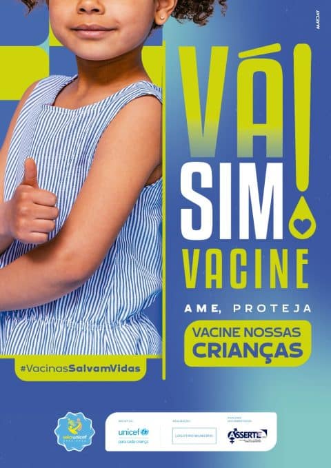 A campanha “Vá sim, Vacine!” busca contribuir para o aumento da cobertura vacinal sensibilizando tanto a população quanto as equipes de saúde, assistência social e educação dos 2.023 municípios brasileiros que participam do Selo UNICEF, onde vivem mais de 17 milhões de crianças e adolescentes.