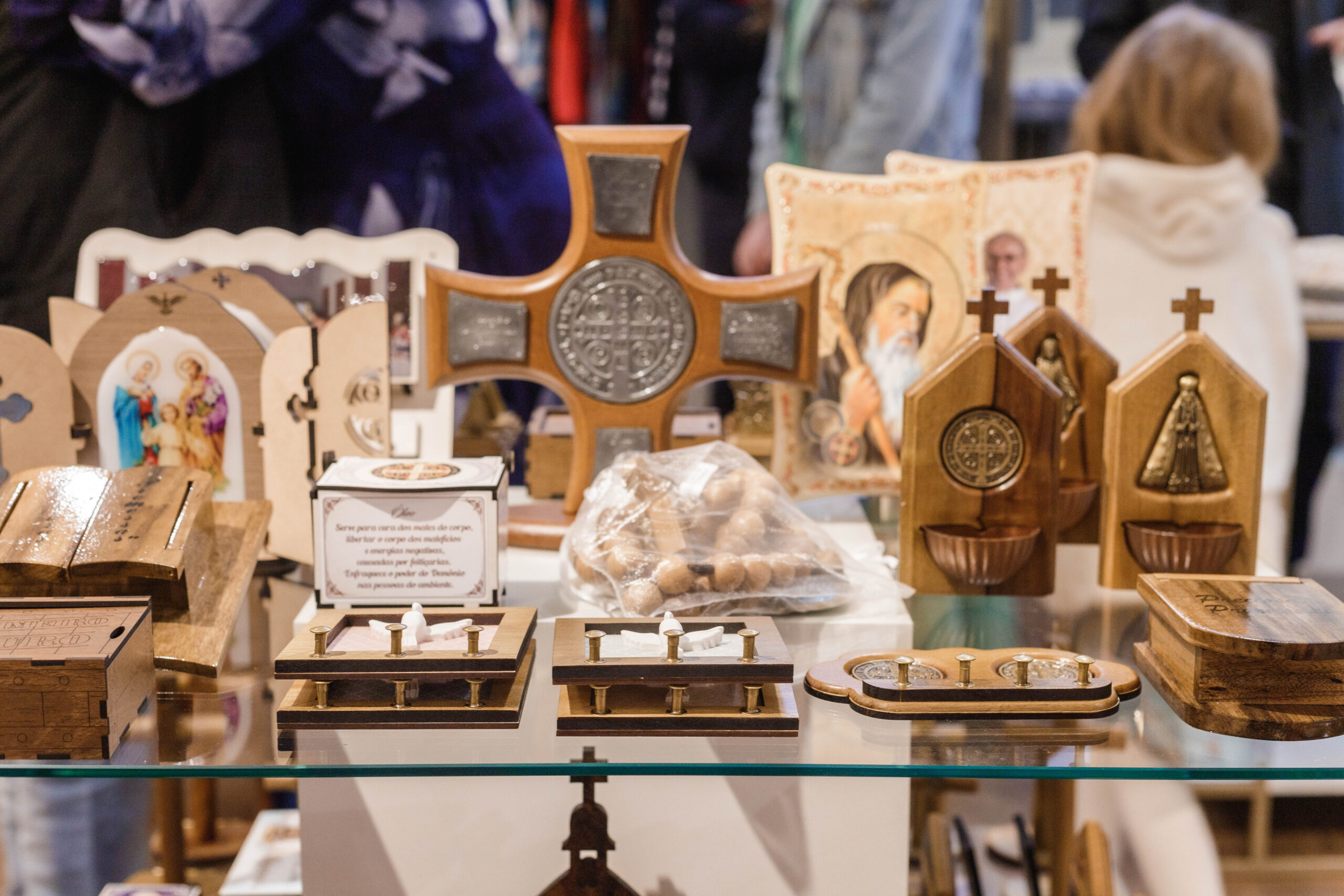 Na loja, os clientes podem encontrar imagens de santos tradicionais e com aplicações em pedrarias, terços, bíblias, itens decorativos, livros de oração e estudo, velas, peças de vestimenta e outros artigos religiosos. A Divino Amor também dispõe de uma rica variedade em opções para presentes, possibilitando a personalização de alguns itens.