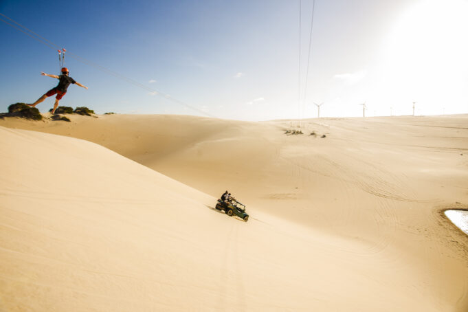 Diversão e aventura são as palavras-chave desse roteiro, que conta com o maior Parque Aquático da América Latina, o Beach Park, que fica na cidade de Aquiraz, e é famoso pela excelente estrutura de piscinas, brinquedos, bares e restaurantes. O turista também pode fazer passeios de buggy e conhecer vilas de pescadores, fontes de águas naturais, dunas, rios, mangues e lagoas. E tem mais: esse roteiro ainda oferece condições de ventos ideais para a prática de windsurf, kitesurf e outros esportes náuticos.