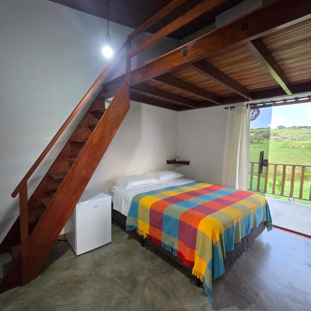 Outra dica é a Pousada Refúgio da Serra, especial para quem quer uma experiência mais privativa. Localizada também na zona rural, são dois chalés para casal com uma piscina cozinha e churrasqueira compartilhada. Os chalés tem sacada para o verde e um banheiro incrível para ver as e. A paisagem ao redor encanta com as pedras famosas de Araruna. O lugar ideal para observar a natureza com paz e tranquilidade. O silêncio faz parte da hospedagem e som não é permitido. Também não tem serviço de alimentação. Nada que umas compras no mercado não resolvam para aqueles que querem relaxar e respirar ar puro.
