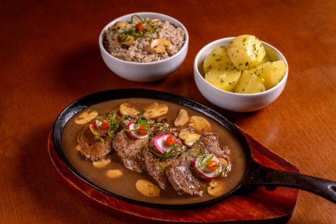 Entre as carnes presentes no menu principal, estão cortes de filé mignon, picanha e carne de sol. As opções ressaltam uma gastronomia que passeia do tradicional Chateaubriand Fillet ao regionalíssimo prato de carne do sol do sertão da Paraíba, acompanhado de feijão verde, arroz salada e macaxeira frita.