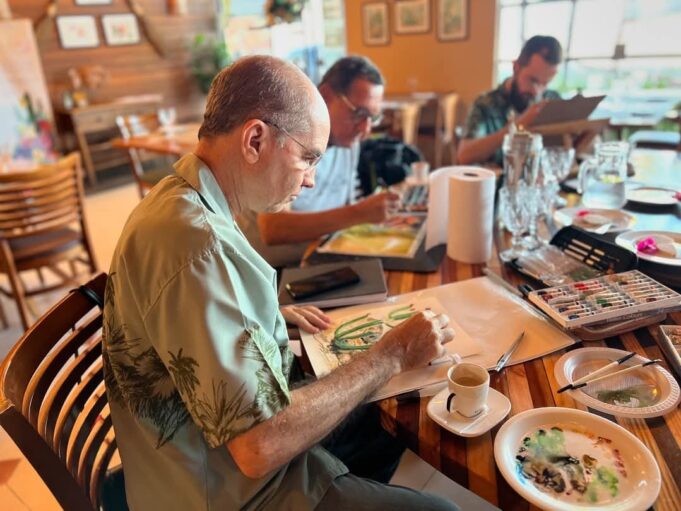 Os artistas participantes da exposição Paraíba Brasil se despedem da mostra que está em cartaz. “A ideia é reunir os artistas para pintar ao vivo e sortear algumas obras produzidas com as mesas de clientes presentes”, explica Antônio Cláudio Massa, curador do projeto cultural do restaurante e também artista plástico participante da exposição.