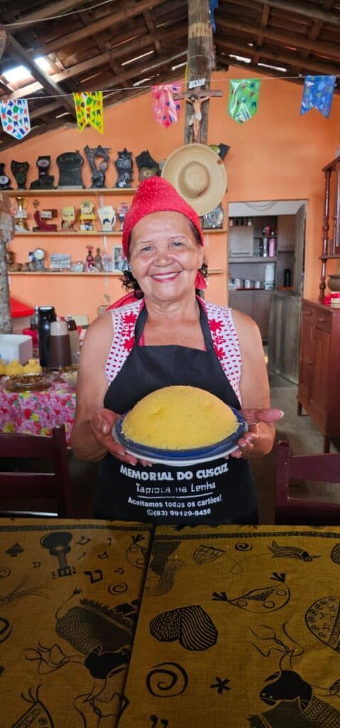 Em Ingá a dica para o café da manhã é no Memorial do Cuscuz, para saborear o famoso cuscuz de cabeça amarrada e ouvir a história de superação de Dona Lia Mendes, uma agricultora que começou a fazer cuscuz e vender nas ruas para vencer as privações da vida. Depois de uma consultoria do Sebrae, transformou o quintal da casa simples num restaurante todo decorado com chita em homenagem ao cuscuz. “Depois do Sebrae minha vida mudou” diz ela, que recebe todos com diversos tipos de cuscuz, tapiocas, café e sucos, e o mais importante: muito carinho. A felicidade dela contagia. Grupos grandes precisam agendar.